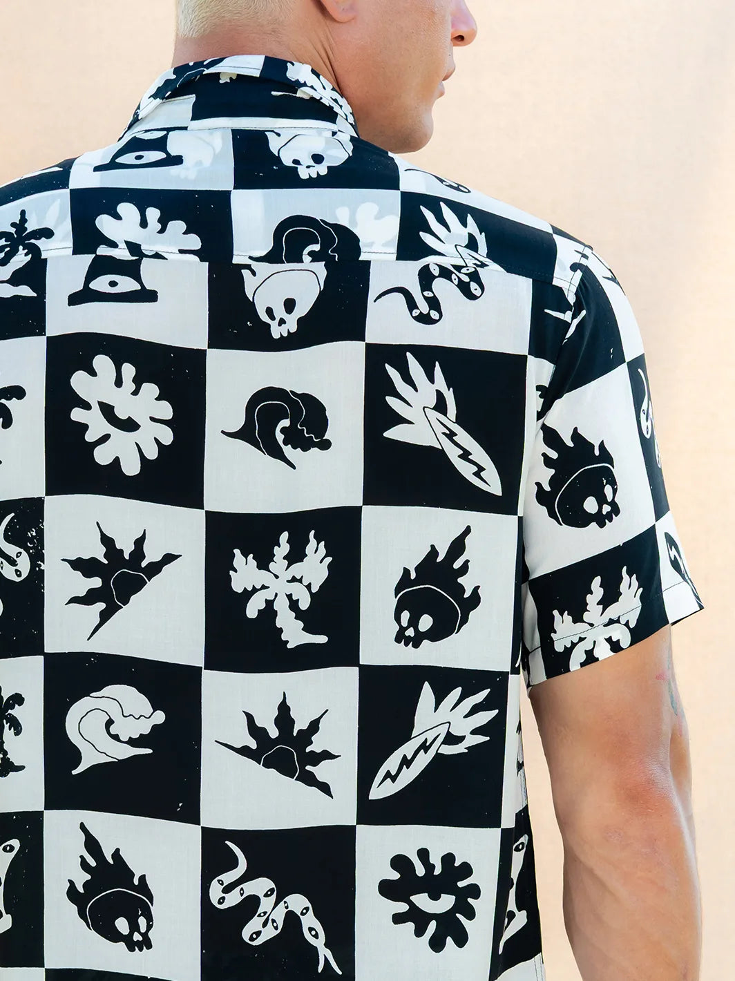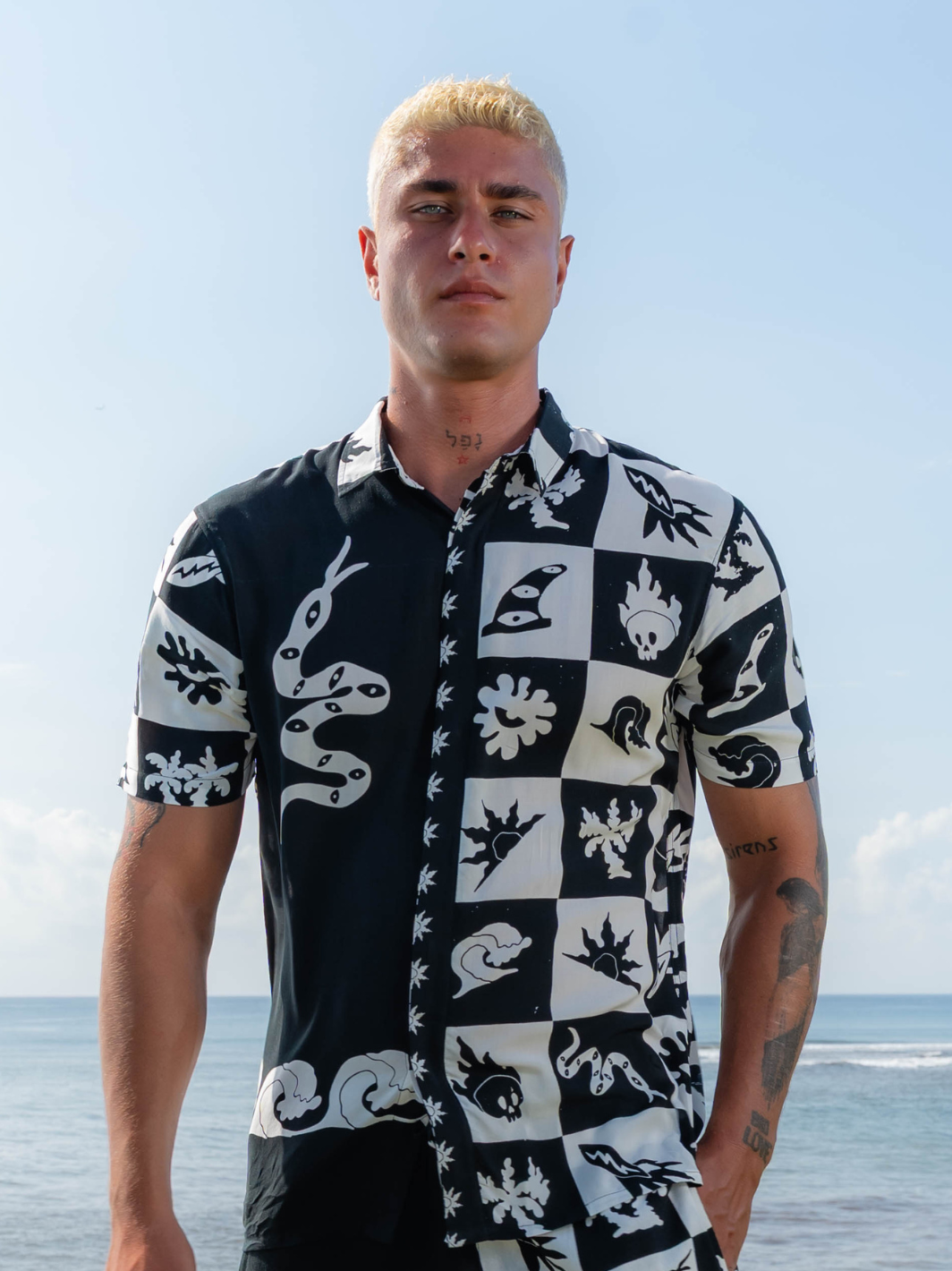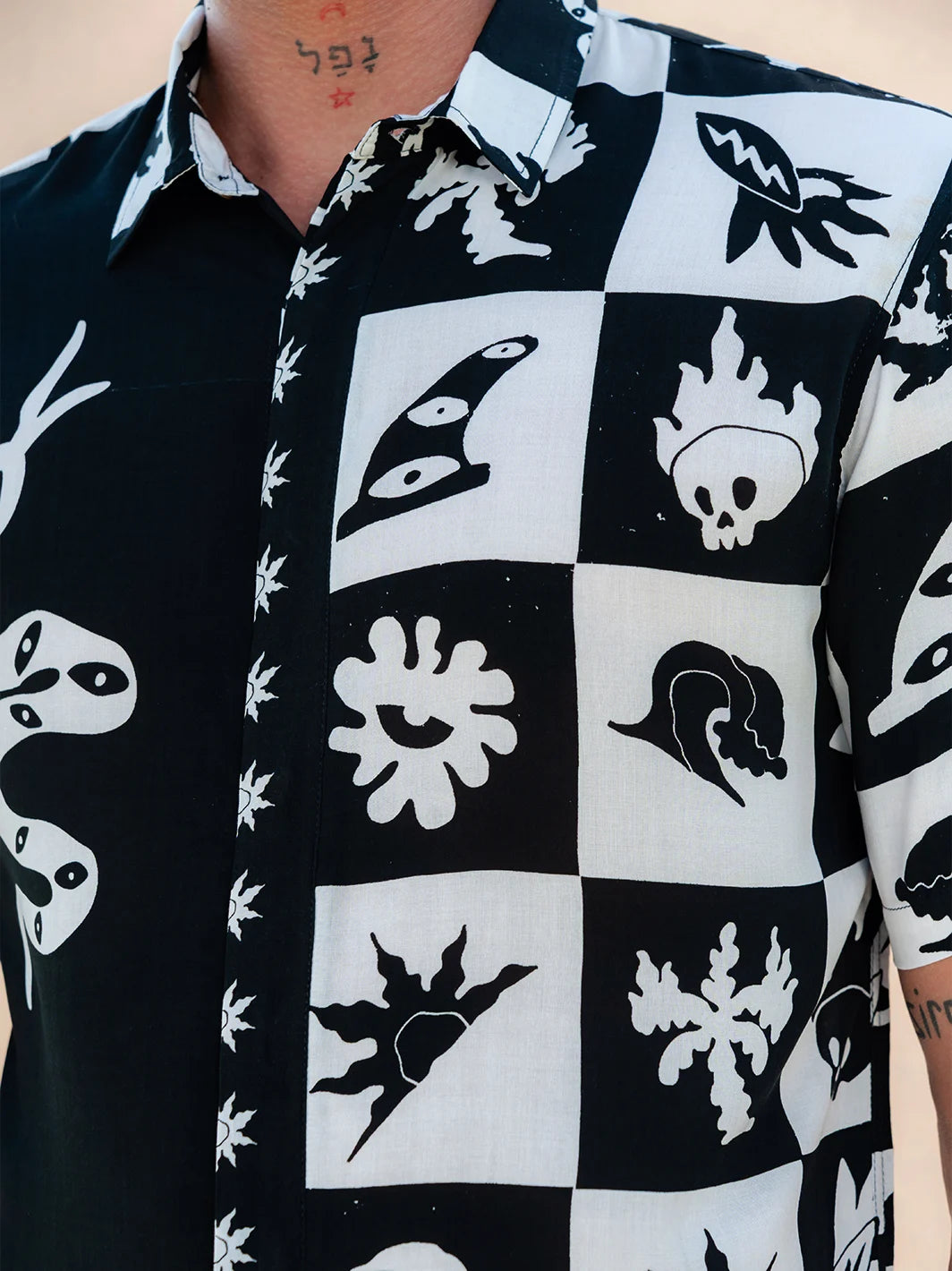The Renegade Shirt in Black is crafted from soft rayon fabric, featuring a dual-tone design with unique printed artwork. Designed in a standard fit, this shirt combines a relaxed, contemporary look with comfort. Ideal for both casual outings and more polished occasions, its eye-catching design and comfortable fit make it a standout piece in any wardrobe.